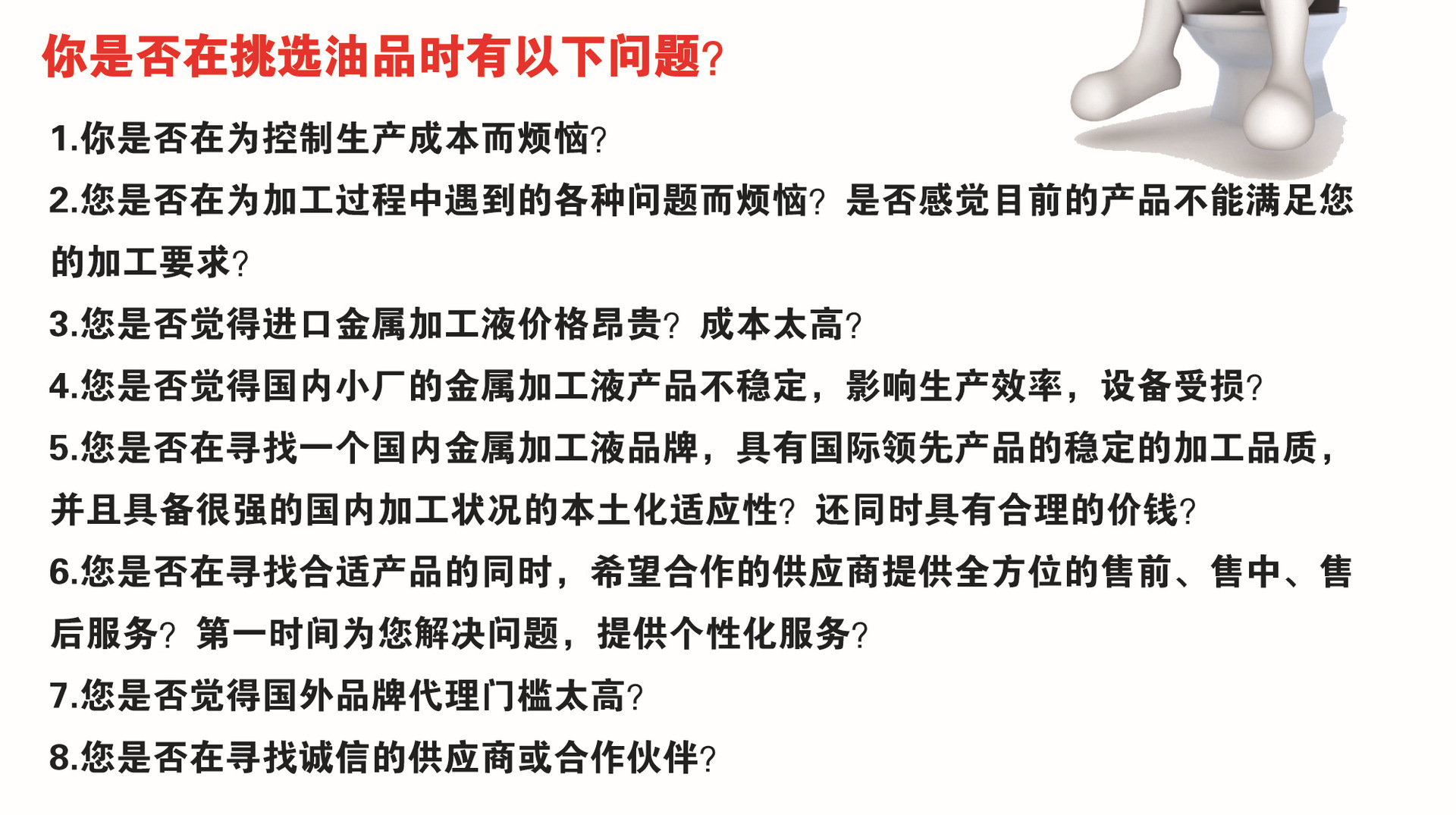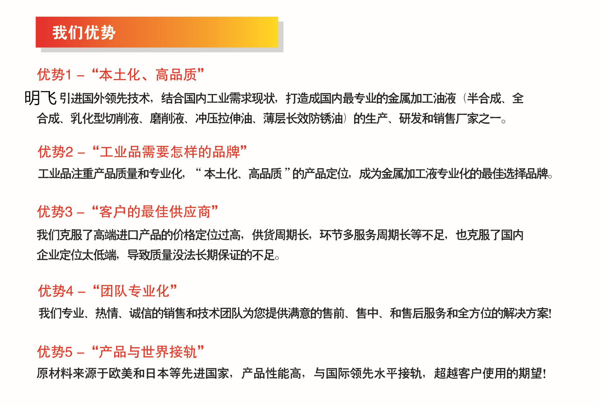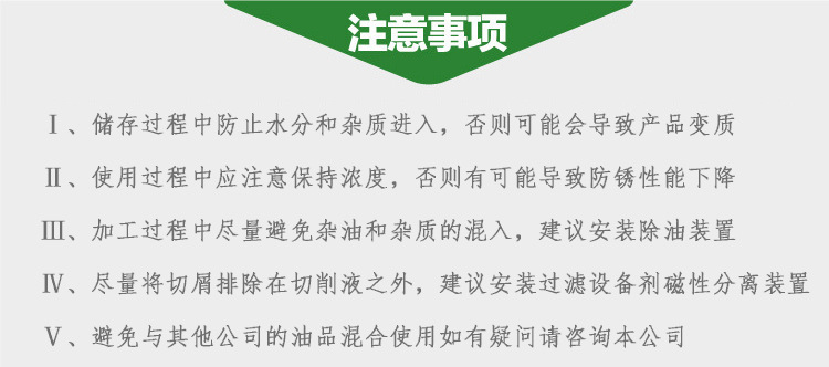 ● 特殊的生物抑制剂,低泡沫,高清洗性,长寿命,使乳化液使用长达一年以上,更经济。