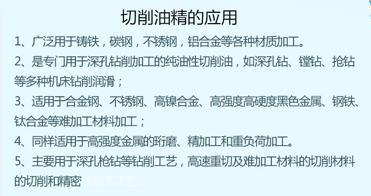 用来配制极压切削、攻芽,适用于难加材料的加工。