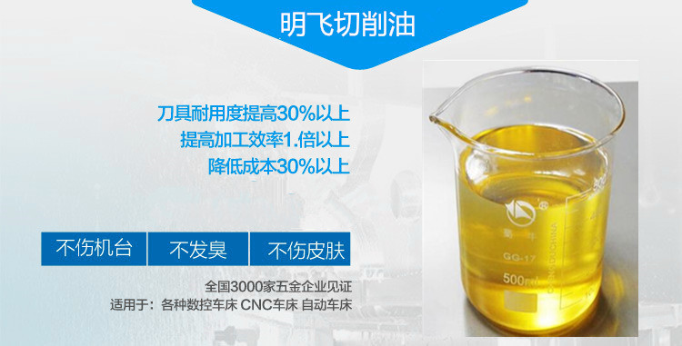 润滑性能卓越:含有多量高效极压润滑添加剂,能完全满足时的润滑要求,能令工件获得良好的表面光洁度并有效延长刀具使用寿命,非常适合于各种型号的不锈钢,铜、铁等的切削加工工艺。