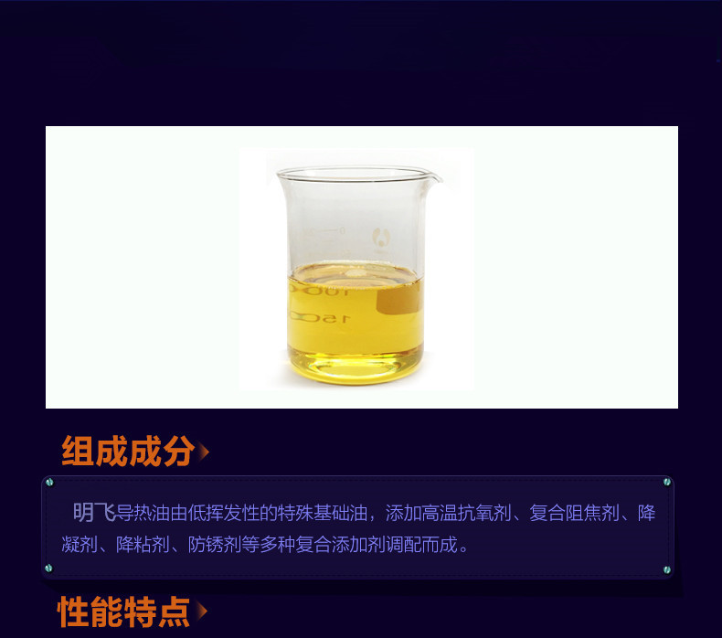 本产品为非矿物油型导热油,系选用合成基础油并添加多种特效添加剂精心调配而成。具有矿物油型产品难以比拟的特性,使用寿命长达5-6年。其优异品质符合国际标准ISO6743/12及GB23971-2009标准规范。